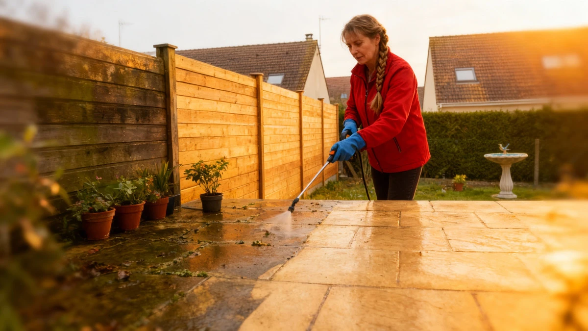 Nooit meer schrobben? Ja, het klinkt als muziek in de oren bij iedereen die ooit, met koude vingers en vastgelopen rug, een groene patiolaag heeft geprobeerd te lijf te gaan. Elke winter is het weer prijs: je loopt je tuin in en ontdekt dat je terras eruitziet als een te biologische salade, compleet met een dikke, glibberige mosfilm op de tegels en zwarte strepen op het hek. Niemand staat dan te trappelen om wéér de harde borstel of de hogedrukspuit boven te halen. Maar wat als het écht anders kon?